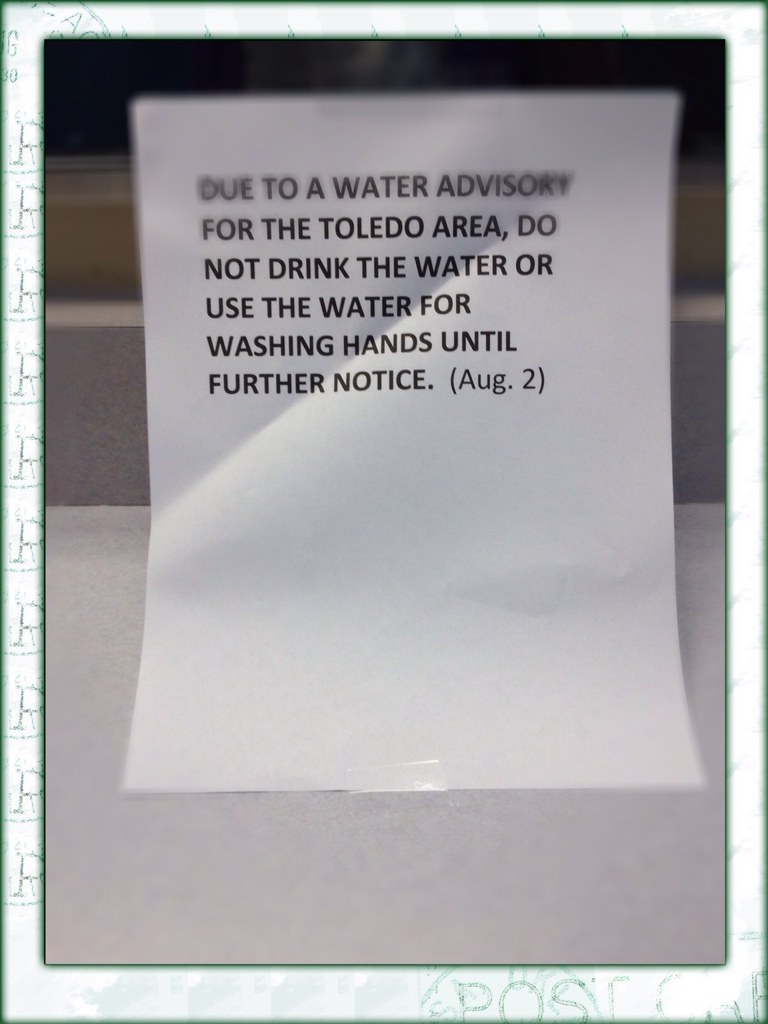 Mindful of the amount of water I drank last night, I got off at Toledo to use the facilities. The boys in our family were sure they could hold on until Elkhart, Indiana. I ended up between two Amish ladies, and we all remarked on the remarkable event of a major American city bereft of a basic necessity for human survival.