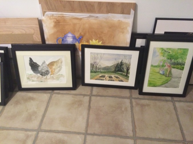 I have a show starting at EquinoxVillage gallery in Manchester, Vermont on Thursday, and the big guy and I have spent the better part of the last two hours matting and framing my efforts for the last few months. The big guy has gone to bed–he has to get up earlier than I do. So I took a little break to lean the fruits of our labor is against the wall of my studio, and, for the first time in my life, I let myself feel proud of the work I’ve done for the last few weeks.