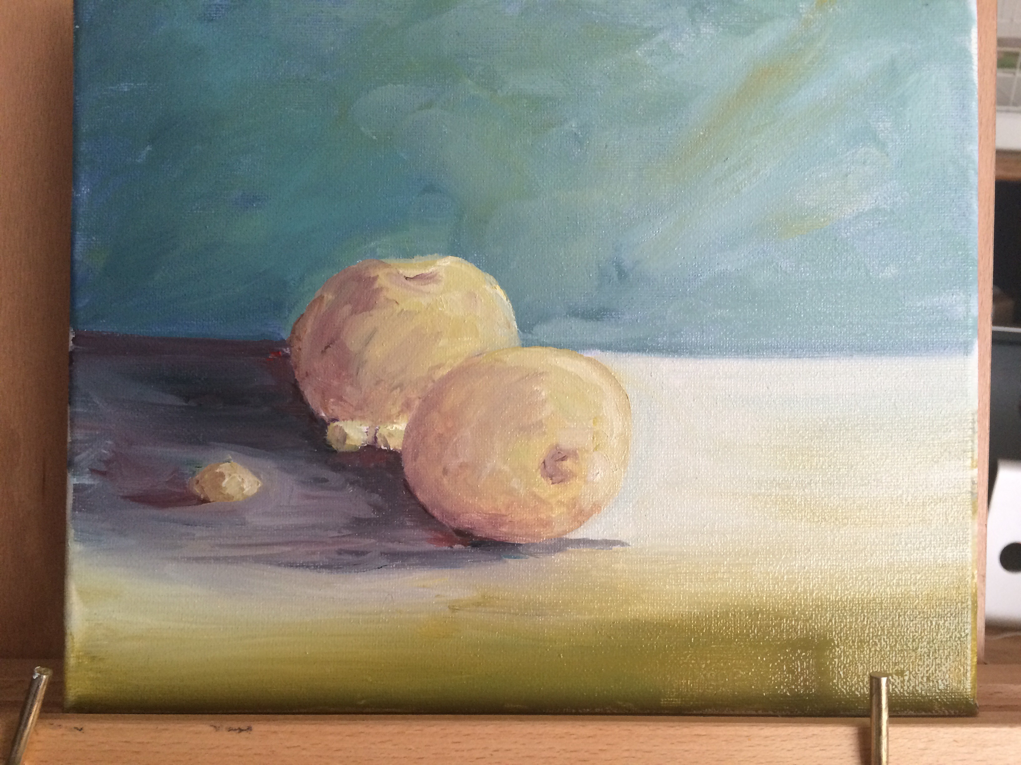 Instead, this morning as I picked up a brush to color in one of the last letters, I felt renewed and excited, and it occurred to me that there is some value to playing in the garden at least a little bit every day. so I finished the letter and got out my easel and a package of oil paints that I bought years ago but had never used and began to play.