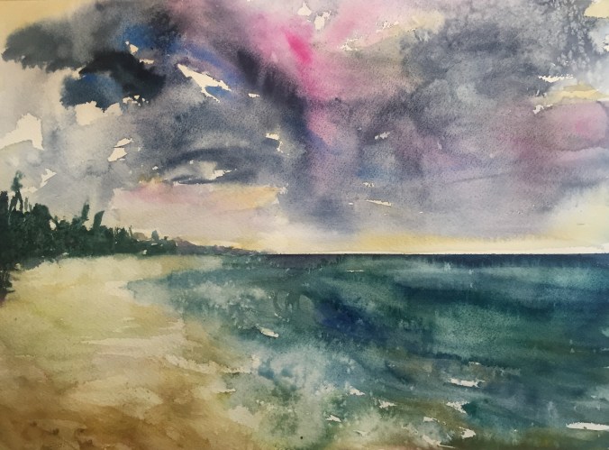 It’s just barely past witching hour, and I’ve been chasing on paper one of those Lake Michigan days when it’s too rough to swim past your knees and too wild to stay cooped up inside away from the beach.