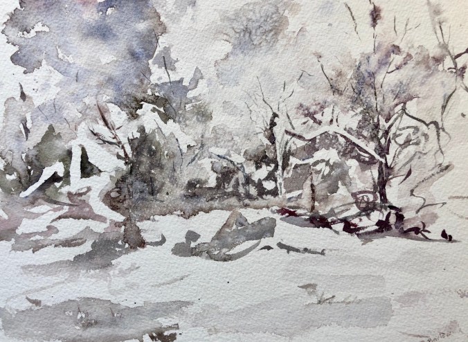 And, for the first time in weeks, mostly because I’m way beyond the “if i didn’t laugh I’d cry” stage of the winter and because I don’t have time to cry and can’t think to write or draw, I picked up a brush and started to paint, and the word found me.