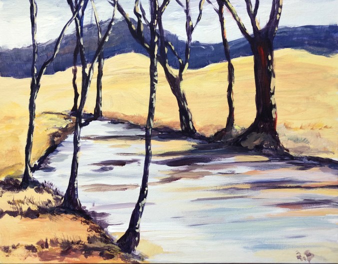 In the beginning I was mainly focused on trying to copy the painting, listening to instructions, and getting to know the new medium. The husband in the couple sitting across the table from us, however, was just as extroverted as T2, and the two of them kept the wife and me giggling as we all painted (Don’t worry T2 was drinking orange soda).