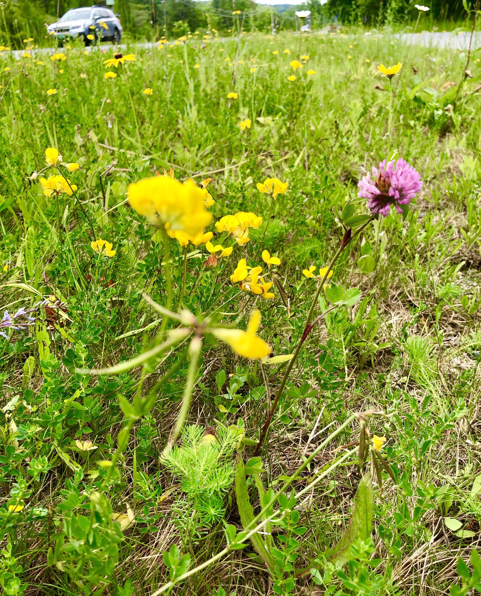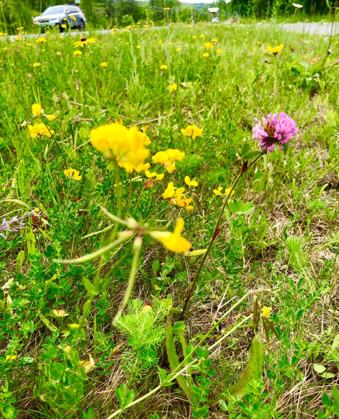 Meanwhile, the boys hang out in the car. I shuffled through the weeds in the fairway as I’ve talked with a customer service rep. She occasionally put me on hold, and I’d glance over to the car to make sure T1 and T2 weren’t killing each other and then at the weeds, each time at a different angle and each time noticing a pink or yellow blossom at the end of the green stalks that made them wildflowers, not weeds. It was a good place to be stuck.