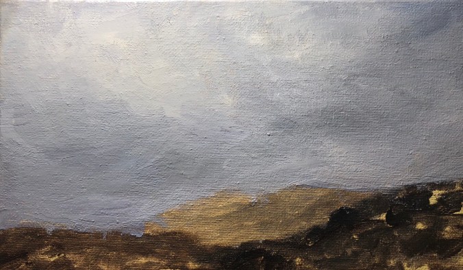 I’ll be contributing the following as evidence to my future peer reviewed paper about how infantile behavior at the tail end of your forties can be a blast: whether or not you’re supposed to, I’ve started fingerpainting when I making skies in oil paintings. Go ahead, you can say it. I am officially five again.