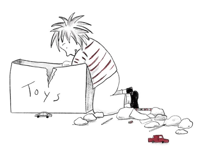I was a slob as a kid. I collected everything and threw away almost nothing. I had drawings on little scraps of paper and stole my mom‘s scissors for drawings and creations. She never expressly said she hoped I’d have a kid just like me, but I think in the back of her mind she must’ve known that it be a pretty good revenge.