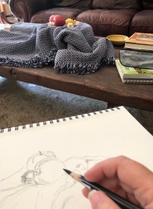 In the end I ended up making a few shaky sketches on my own. I’ll get there oils out in a little while – oil seems to be more forgiving of my unsteady hands.