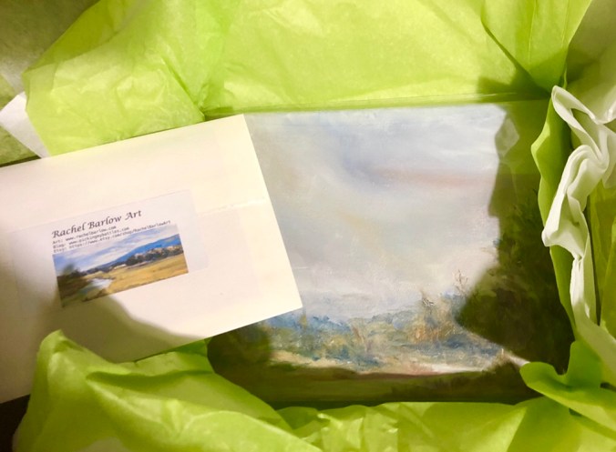 Someone ordered painting as a gift, so I’m wrapping it with a little more colorful tissue tonight.