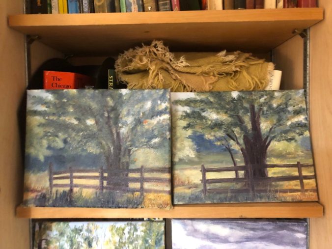 One of the things I’m loving about oil is how easy it is to fix things you don’t like. If you don’t like a fence, paint over it. If you don’t like a shadow, add a little light to it. If you really don’t like a painting, put the canvas to the side to be painted over and made into a new clean slate. If you set one painting aside and try to start over, you may even end up with two paintings for the work of one.