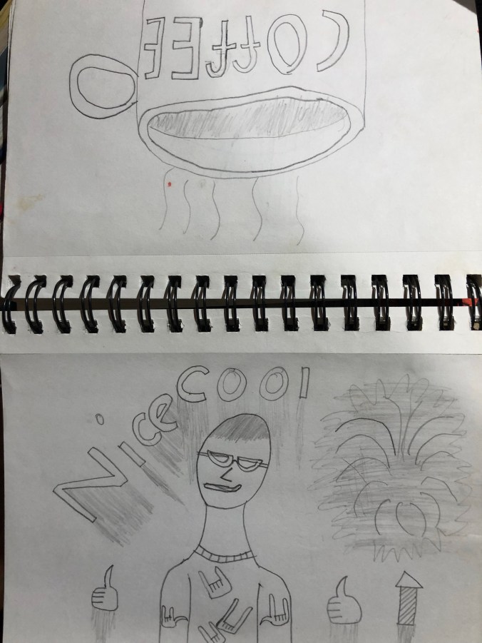 When he first started doing this, I believed that I would get my sketch pad back. Now I’ve made it a habit to bring two.