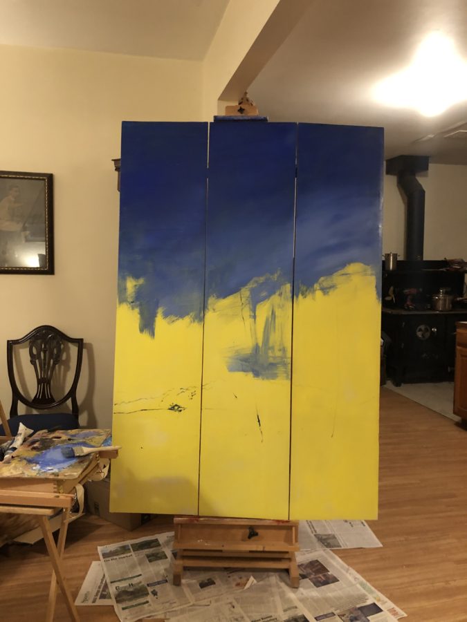 At 6 feet tall by 4 feet wide, right now it’s a hot mess. It’ll take a while to see something emerge, but there’s nothing like a little creative work out at half past midnight.