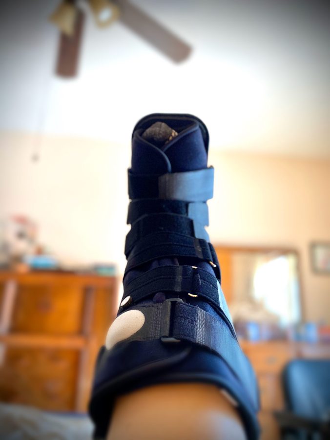 Thing2 is cleaning his room, occasionally coming into see me to show off long-forgotten souvenirs from trips or country fairs (The giant inflated pickle he attempted to leave in the corner will certainly cause a nightmare or two). The Big Guy is listening to midday news as he does dishes. And, as the pain med I’ve taken after today’s doctor visit kicks in, lulling me to sleep in our sunny bedroom made even cozier by the sound of a snoring dog and purring cats I can only look at the new buckle-festooned boot wrapping the leg that has caused this moment and wonder if, like Luke Skywalker, I’m too short to be a stormtrooper. Should make for some epic daydreaming.