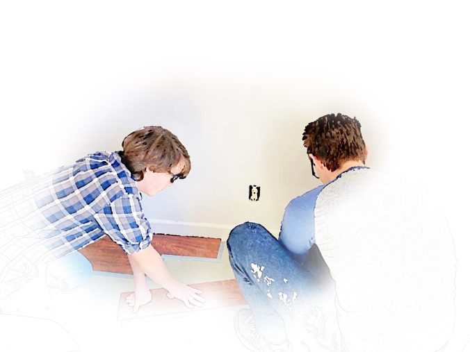 He painted quietly for the first few minutes, ignoring his brother’s cheerful attempts to engage him in high minded debates about The Rise of Skywalker or the latest in video gaming furniture. It’s pretty tough, however, to stay detached when T2 is trying to be social with you, and soon they were chatting about the job and how they would spend their money. They had the room painted in less than an hour (T2 turned out to be a better negotiator than I gave him credit for) and were starting on the flooring almost before I could give them a quick tutorial on “measuring twice, cutting once.“
