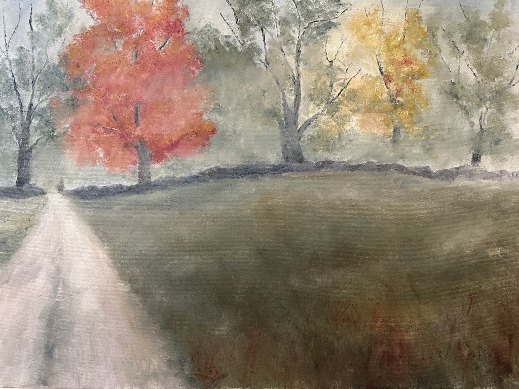 Instead, on this last weekend, before school and graduate work, begin again, I found myself returning to memories of, soggier fall days. At first, I thought this rainy summer was living rent free in my head, but, I realized the fog had its origins and anxiety about the ability to meet the demands of the coming square and to continue to paint without a mentor and outside schedule defined by work and study.