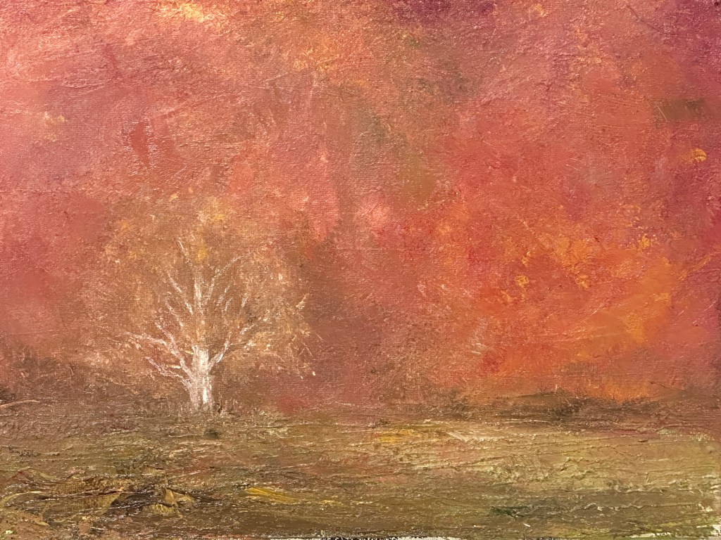 For the past few years I’ve been painting the scenes in Southwestern Vermont and Michigan, and it wasn’t until a conversation with my mentor that I realized that all of those stories featured ensemble casts. Most of my pieces feature the mountains or lake and sky and any elements that add to the drama of a storm or setting sun.