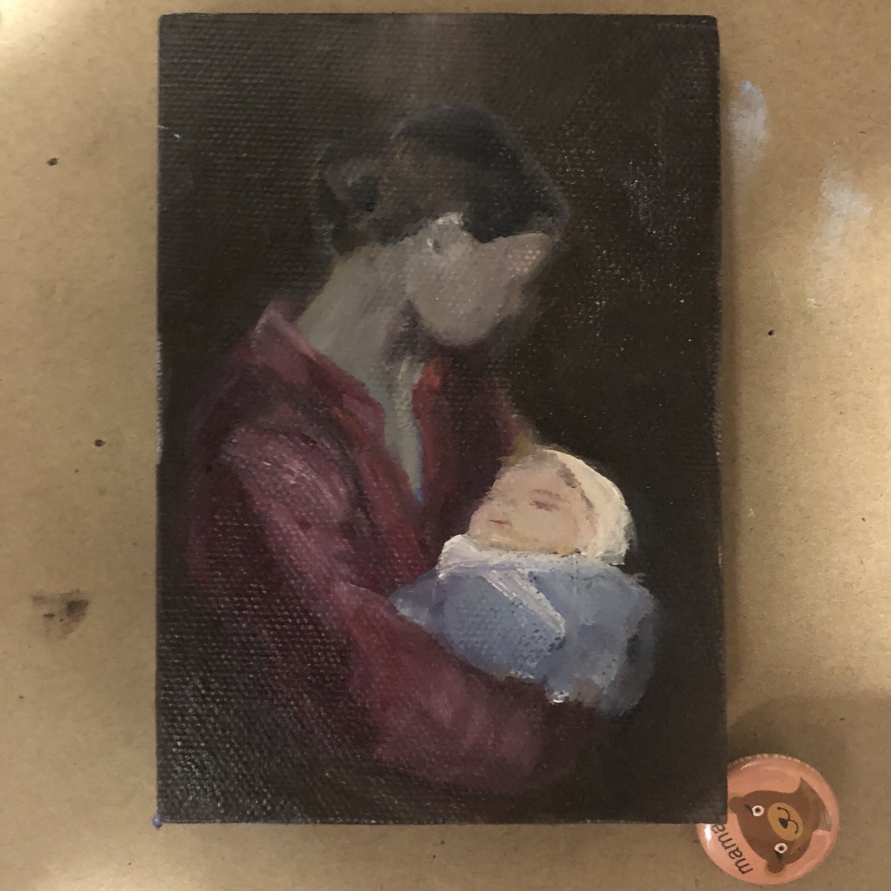 Like all the other paintings in that exhibit, the example for my study was done by a woman in Paris between 1850 and 1903. I love the mother and child theme. Even more, I love knowing the person who painted this cut her creative teeth copying the classics and working in a supportive community of her peers.