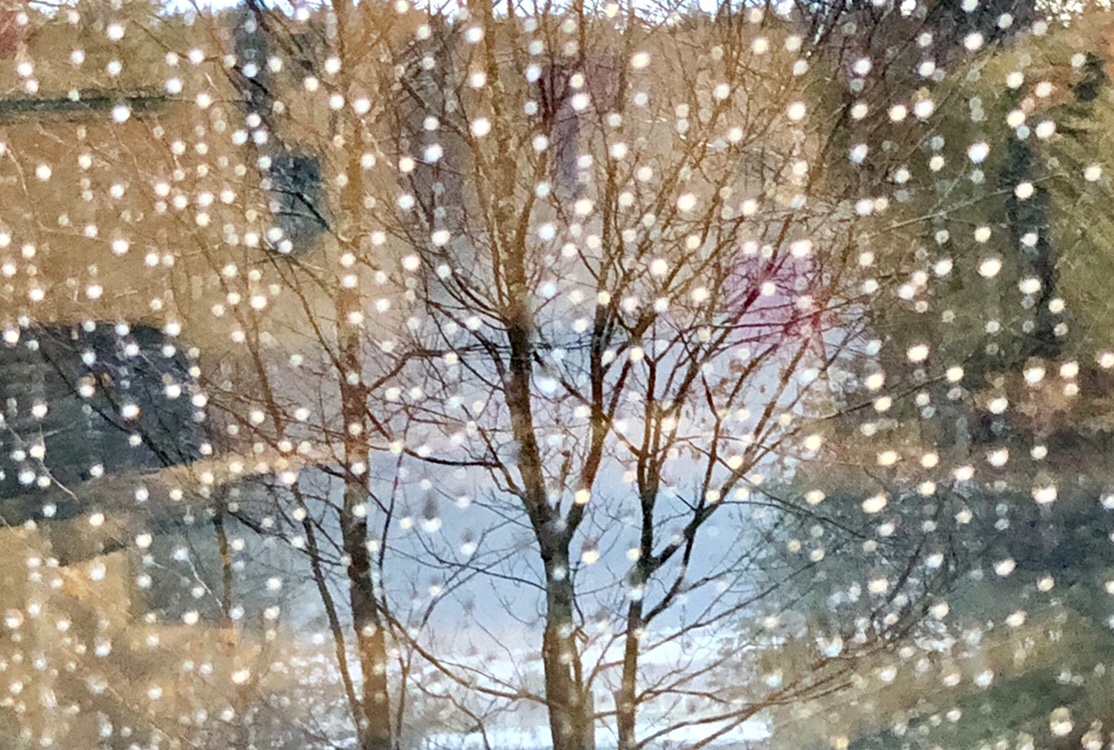 The twinkle lights are still glowing and the tree is still up