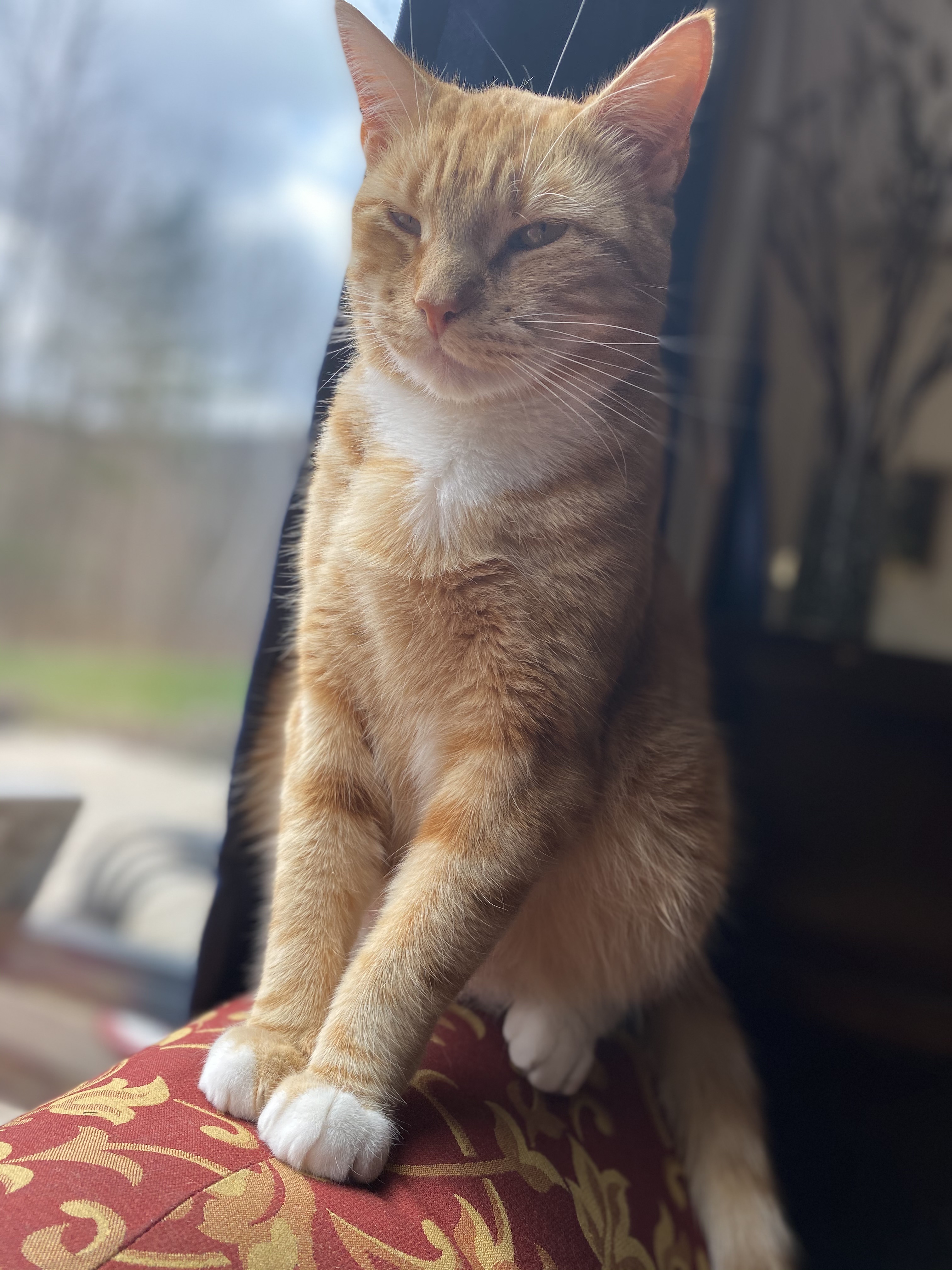 Yesterday morning Jim went out. He’s normally snuggled in my arms or stretched out on the bed most of the morning, so we all assumed he’d be back in five minutes (he and Princess Jane had been playing their favorite game of making us open the window every 8 minutes).