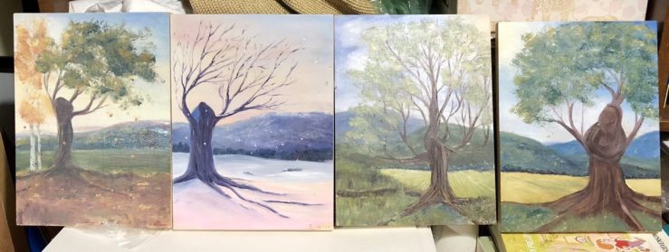 “ Saturation Point” 4” x 6” Oil – $65“Piece of Perfect” 4” x 6” Oil$65Fall, 9×12, $150 Winter, 9×12, $150 Spring” 9” x 12” Oil$150“Respite” 8” x 10” Oil $125