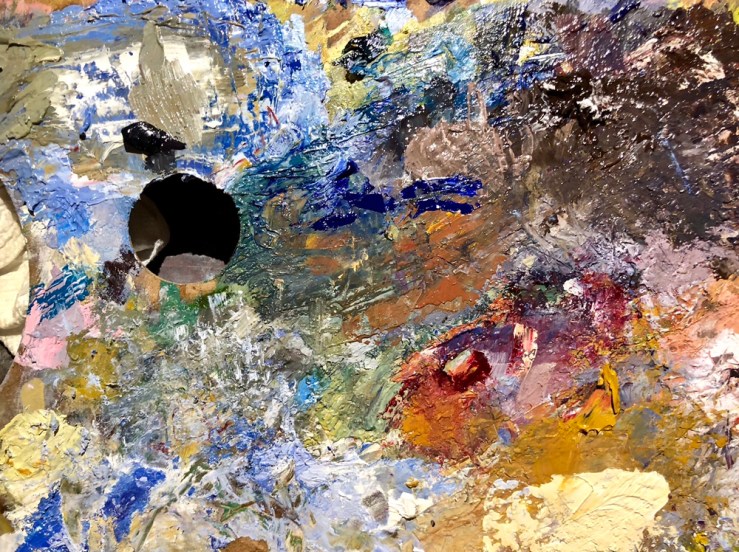 It seems appropriate that this palette would start to give out tonight before I get ready to hang my show in Bennington. It’s worked hard, helping produce over thirty pieces – some of which have gone to new homes.