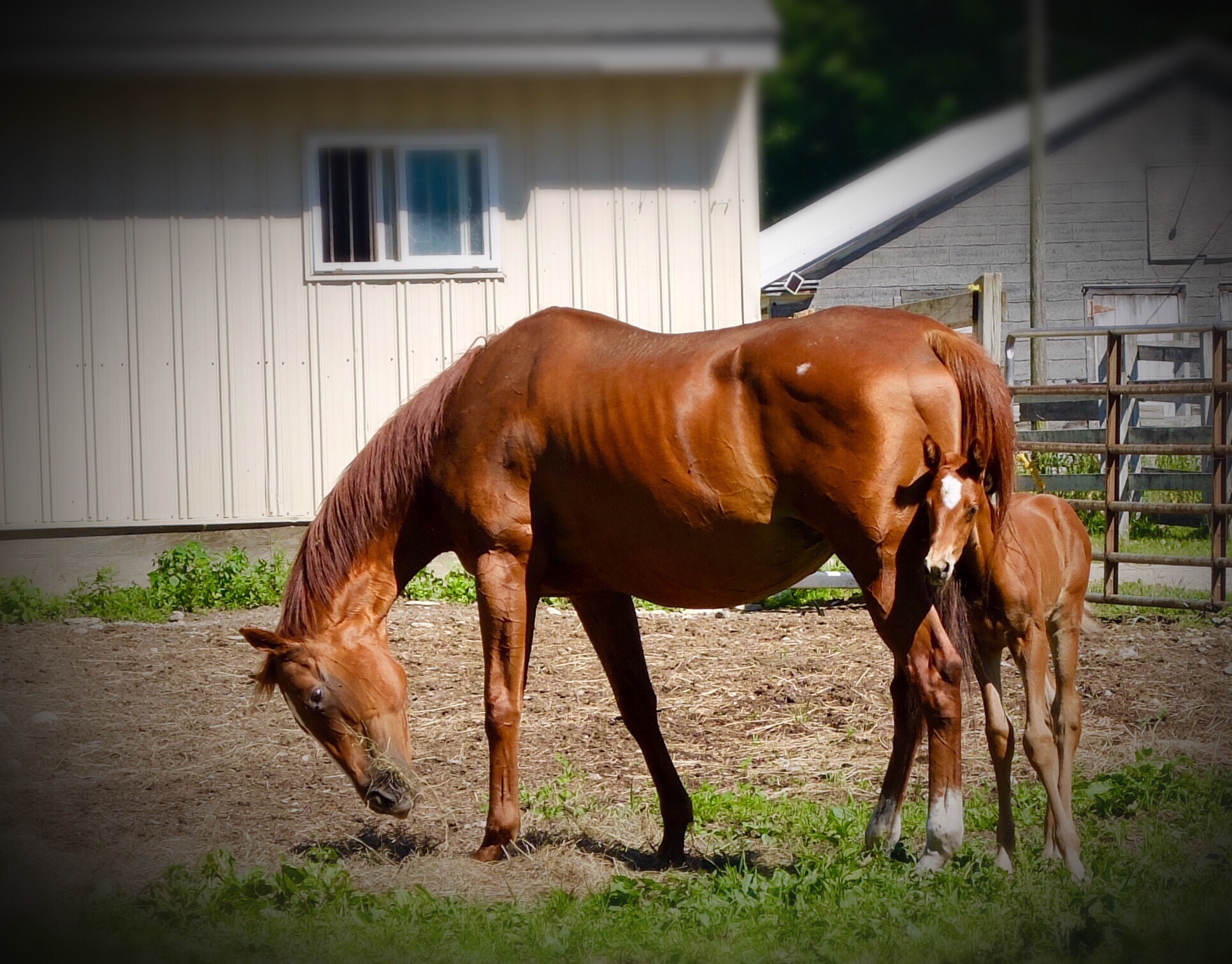 I don’t know what the foal’s name is. I’m calling him Ralph. He’s less than a week old, tagging along after his mom, getting in her hair/tail. He was napping while his mom was recharging when I first went to grab a snapshot. I got this on the way back from breaking my diet at the Wayside.