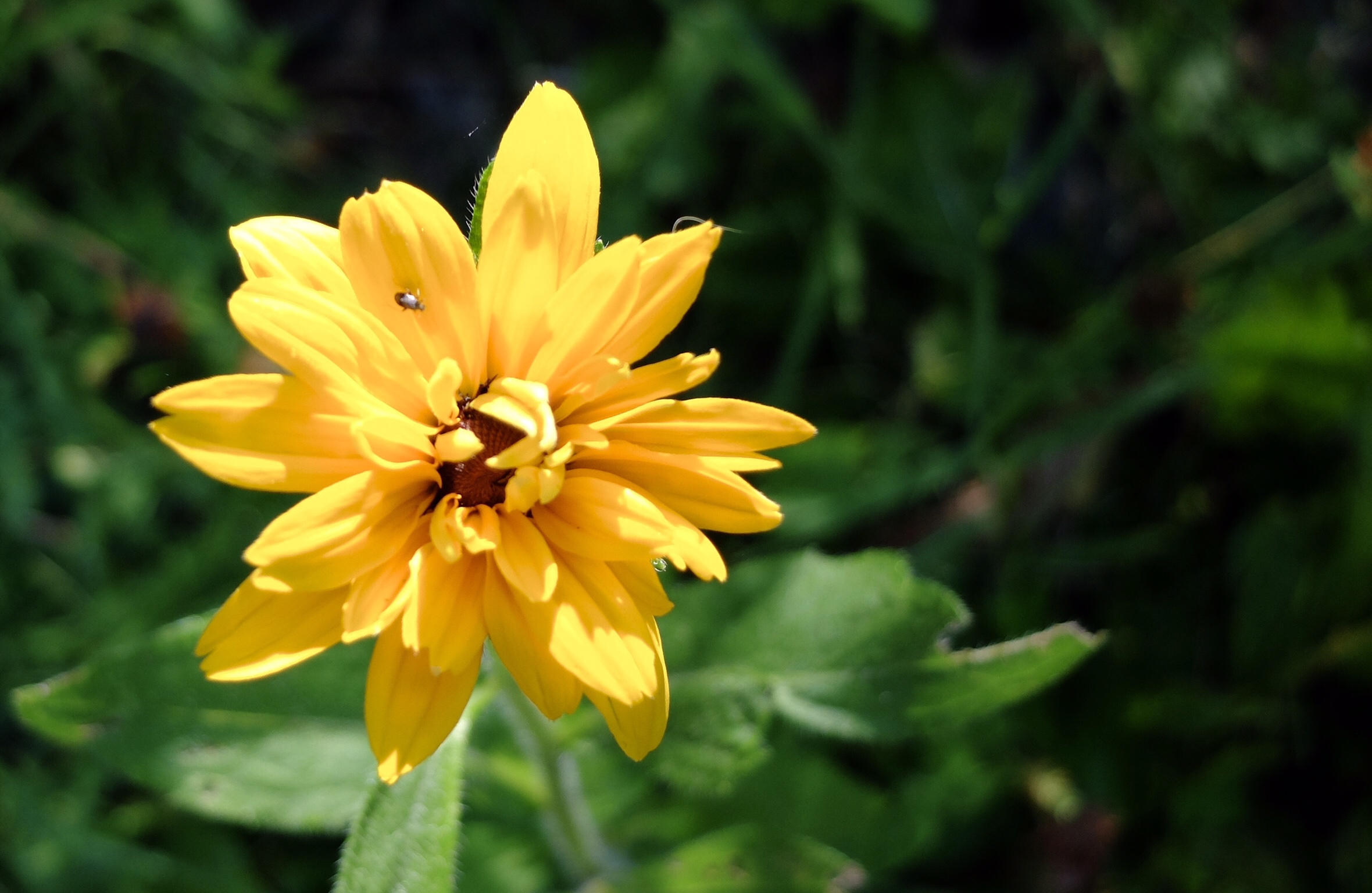 Like any dedicated photojournalist I navigated through the garden zone to get the day’s news. Crawling between the feathery, yellow blooms to get a shot of a nearby day-lily, a mere drop of the venom from one of these beauties somehow hit my finger. It’s now making the skin on my finger look like a soap bubble, and I am now finding out that, not only am I no lady, I’m not even as ladylike or as tough a a ladybug.