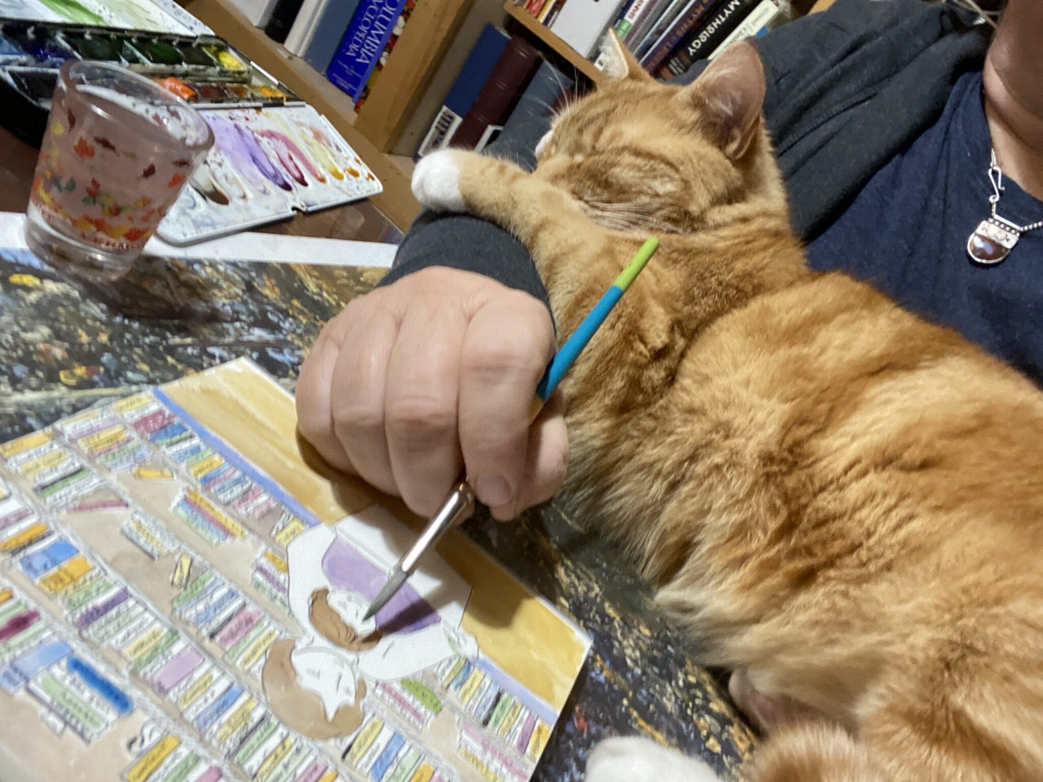 “Don’t worry,” he was saying. “I’m happy. Pet my head and you can be happy too.”